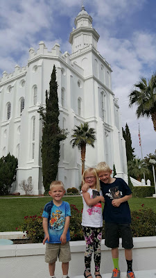 We stayed at Uncle Lew's and it is so great! Leading up to the trip we kept telling Kaden we were going to St. George and staying at Uncle Lew's. So once we got there Kaden asked where Uncle Lew was. Then all of the kids got confused and said we were at St. Lewis. Kaden asked who was St. George. Kaden was very happy there and said, "I love vacation!!!"