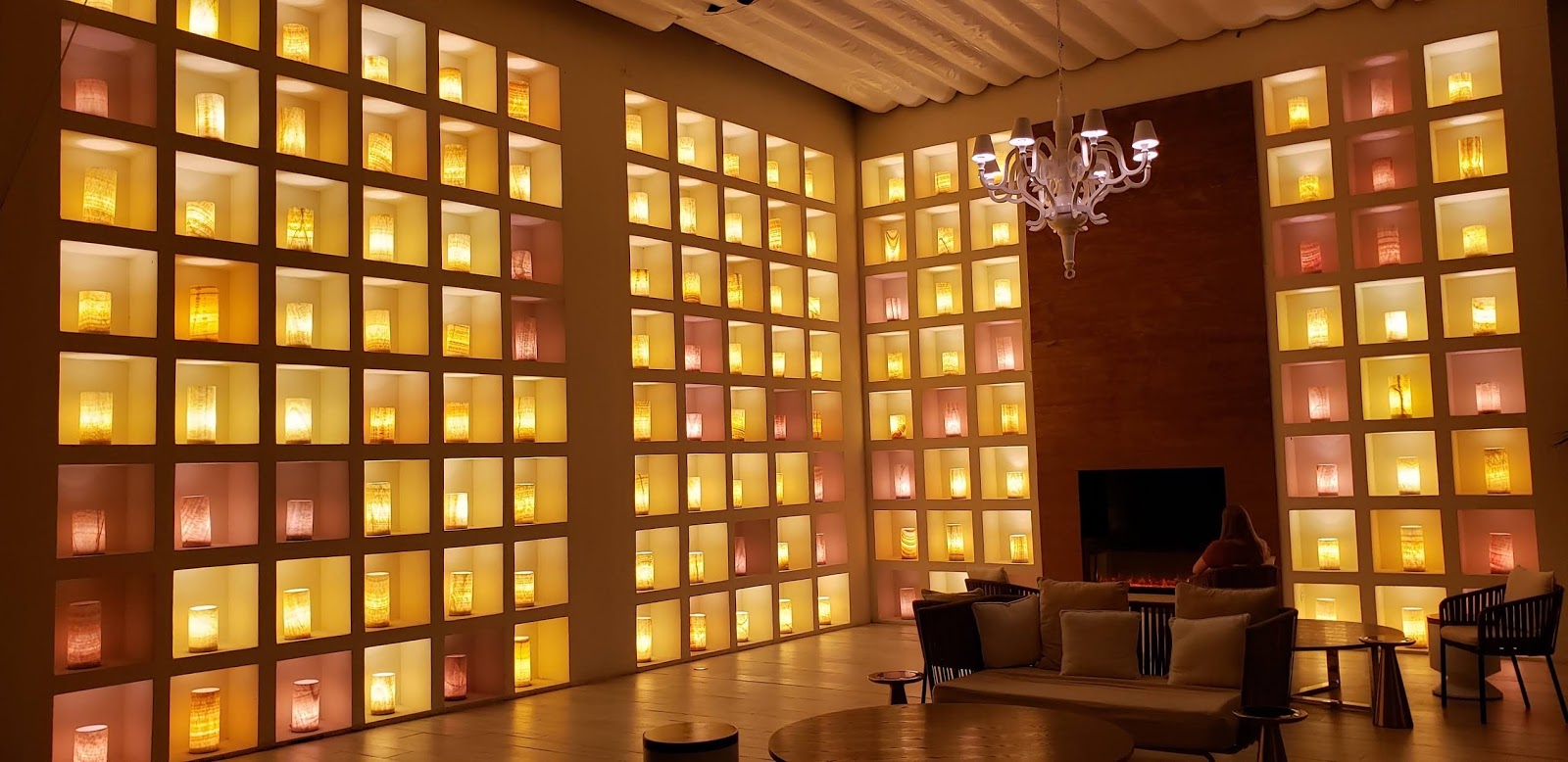 This was a sitting area that we thought was really cool. There is a candle in each hole.
